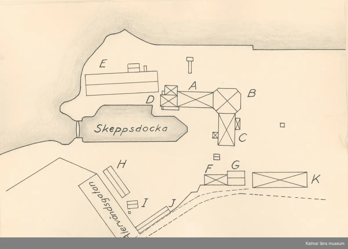 - Varvet i Oskarshamn. Efter 1885 års karta över Oskarshamn .