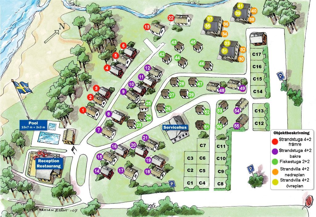 Bo vid havet | Björkhaga Strandby , Karta, Stugbyar, Mellersta
