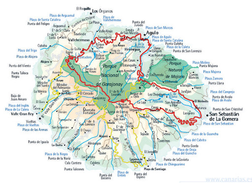 - La Gomera karta med orter, stränder, sevärdheter och tips..